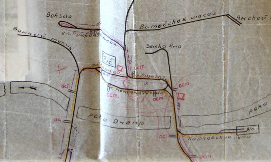 Музей Смоленского трамвая > Схема трамвайных путей г. Смоленска 1979 г.477×540 px