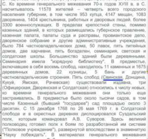 «В Свинской слободе имеются ведомства наместнического правления, казенный провиантский магазин, …».