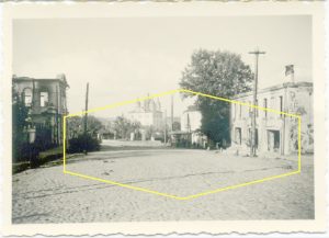 Пишут. что это август 41-го (т.е. “после июльской бомбардировки 1941 года”), однако – ларёк целый, 😯