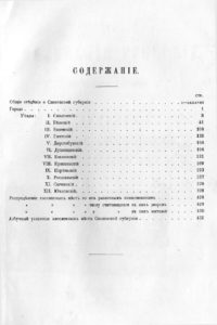 Литера Ру: Содержание книги: карта губернии, общие сведения о губернии и описание населенных мест, включающее положение, расстояние в верстах, число дворов, жителей, наличие церквей, учебных заведений, почтовых станций и т. п. плюс алфавитный указатель селений. В книге 517 стр. плюс общие сведения.