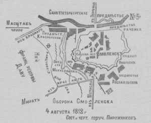 Еще до рассвета 5 августа полки Барклая расположились для обороны Смоленска; корпус Дохтурова, сменив Раевского, расположился так: 24-я дивизия заняла Красненское предместье и, так называемый, Королевский бастион; 7-я дивизия заняла Мстиславльское предместье, где стал и Псковский полк, и Рославльское. С рассветом 5 августа началась …