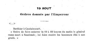 «Дивизия прибыла к Смоленску 16-го в четыре пополудни. Она заняла позицию между III корпусом, который был слева от нее, и дивизией Морана справа от нее. Батальон 12-го линейного полка был немедленно выделен, чтобы выстроить линию стрелков впереди фронта дивизии».