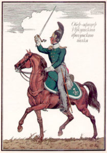 Обер-офицер Иркутского драгунского полка. Серия открыток с рисунками О. Пархаева