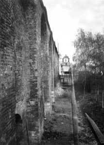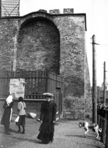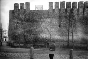 … Городецкая круглая, или Воскресенские водяные ворота. Возле нее к Днепру была земляная крепость до Иворовской башни. Башня взорвана в 1722 г. 8 июля по неосторожности часового, охранявшего пороховой погреб под нею. Пролом заделан кирпичом под лицо со стеною и укреплен быком. Возле него – Оленева труба, в которую течет ручей из древнего Смолигова колодца. …».