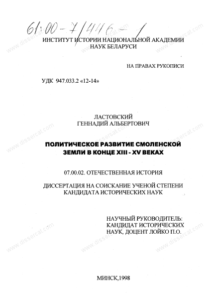 Научная библиотека диссертаций и авторефератов disserCat > Научная электронная библиотека > Исторические науки > Отечественная история > Политическое развитие Смоленской земли в конце XIII-XV веках