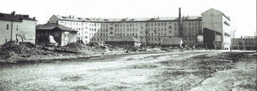Во всяком случае, на его торце (который на северном углу со стороны ул.Докучаева), на высоте примерно 2,5-3 метра наличествовала еще долго после войны (ЕМНИП, как бы даже не до начала 60-х годов) надпись крупными черными буквами – Kommandantur, подчеркнутая во всю длину направленной влево стрелкой-указателем.