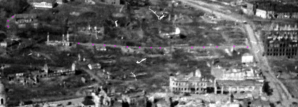 Розовыми точками выделены отчетливо различимые на снимке участки ул. Войкова.