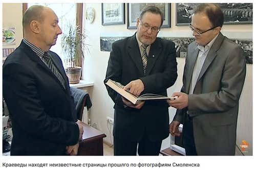 “Новые открытия на основе старых фотоснимков. «Смоленск в оккупации» … Авторы издания – Игорь Трапезников и Сергей Амелин, изучая старые снимки, сделали несколько неожиданных находок. …”.
