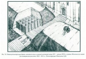 “… на площади Смирнова (ныне пл.Победы) внезапно обнаружился культурный слой с фрагментами деревянных ворот и настила двадцатиметровой проездной Молоховской башни. …