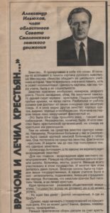 «Александр Антонович Ильюхов — кандидат исторических наук, доцент кафедры отечественной истории СГПИ. …  А читателям предлагаем беседу нашего корреспондента с А.А. Ильюховым, как с членом областного Совета Смоленского земского движения об актуальных проблемах этого явления».