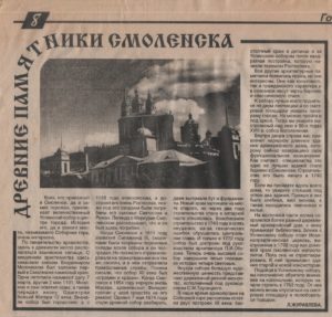 Л. Журавлева. Древние памятники Смоленска. «Всё!», пятница, 28 июля 1995 г. №91(321); стр. 8.