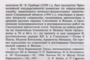 Энциклопедия Смоленской области. Ч.I. Персоналии, стр.19-20: Д.И. Будаев, А.Т. Смирнова: Барановский Петр Дмитриевич.