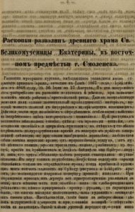 Михаилъ Полесский-Щепилло, заведывающiй: Раскопки развалин церкви св. Екатерины в восточном предместье Смоленска, 1870.