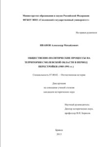 1. Иванов А.М. Общественно-политические процессы на территории Смоленской области а период перестройки (1985-1991 гг.)