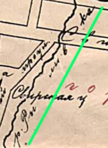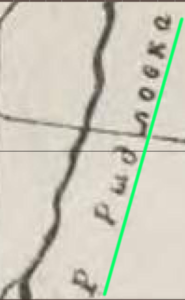 – А вот на всех 4-х приведенных здесь схемах/планах сразу справа от ц. Архангела Михаила нанесена впадающая в Днепр речка с 2-мя рукавами-притоками, а на двух последних (1898 и 1905 гг.) даже подписано ее название – однако, очень плохо читабельное. Разобрал кто-нибудь?