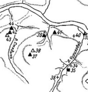 Речка справа от Свирской церкви, план Пестича-Гиндце, 1912 г.