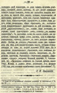 «Автор: Лавровский Л.Я. / Заглавие: Очерк из истории Смоленской духовной семинарии в эпоху ее первоначального возникновения в связи с общим состоянием духовного образования в России в первой половине XVIII века / Ответственность: Л.Я. Лавровский / Место издания: Смоленск / Издательство: тип. Е.П. Позняковой / Год издания: 1891 / Количество страниц: 80 с. / Общее примечание: Авт. указан в конце текста#Без тит. л. и обл. / Библиотека: Российская государственная библиотека (РГБ) / Язык: Русский (дореформенная орфография)».