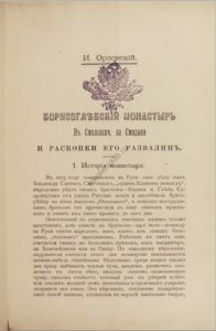 И. Орловскiй. Борисоглѣбскiй монастырь Въ Смоленскѣ на Смядыни, и раскопки его развалинъ. 7 ноября 1908 г. Ив. Орловскiй. // Смоленская Старина. Выпускъ первый. [Ч.I]
