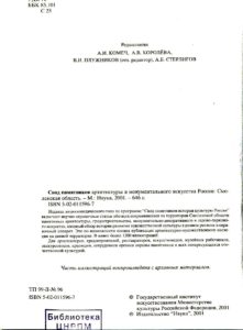 3. “Смоленская Область Редколлегия: А. И. Комеч, А. В. Королёва, В. И. Плужников (отв. ред.), А. Б. Стерлигов М.: Наука, 2001. – 646 с.” Свод памятников архитектуры …