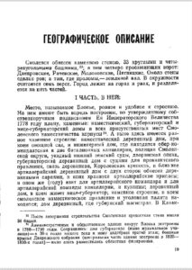 В одноименной публикации в журнале «Северный архив» №3 за 1828 г. историческое описание начинается сразу после общего названия, а географичесое описание выделено в отдельный раздел: