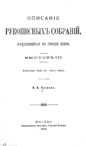….«Описание рукописных собраний, находящихся в городе Киеве. Вып. 3. Петров Николай Иванович.
