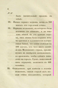 ….«Осажденные, при известии о ведении подкопов, заняли старый вал позади стены находящийся, который составлял укрепление города прежде сооружения стен. На сем вале, по Московскому обычаю, был весьма искусно устроен ложемент с деревянным частоколом, а в некоторых местах поделаны огромные срубы для помещения батарей. Не страшась ни подкопов, ни проломов, осажденные смело защищали сей вал» {9]. …