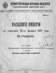 «Библиографическое описание: Первая всеобщая перепись населения Российской империи 1897 года / Изд. Центр. Стат. комитетом М-ва вн. дел ; Под ред. Н. А. Тройницкого. – [СПб.], 1897 – 1905.