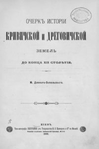 Библиографическое описание: Довнар-Запольский, Митрофан Викторович (1867-1934). Очерк истории Кривичской и Дреговичской земель до конца XII столетия / М. В. Довнар-Запольский. – Киев : Тип. т-ва И. Н. Кушнеров и К°, 1891. – VIII, 170 с.