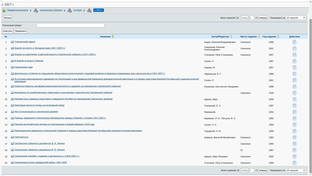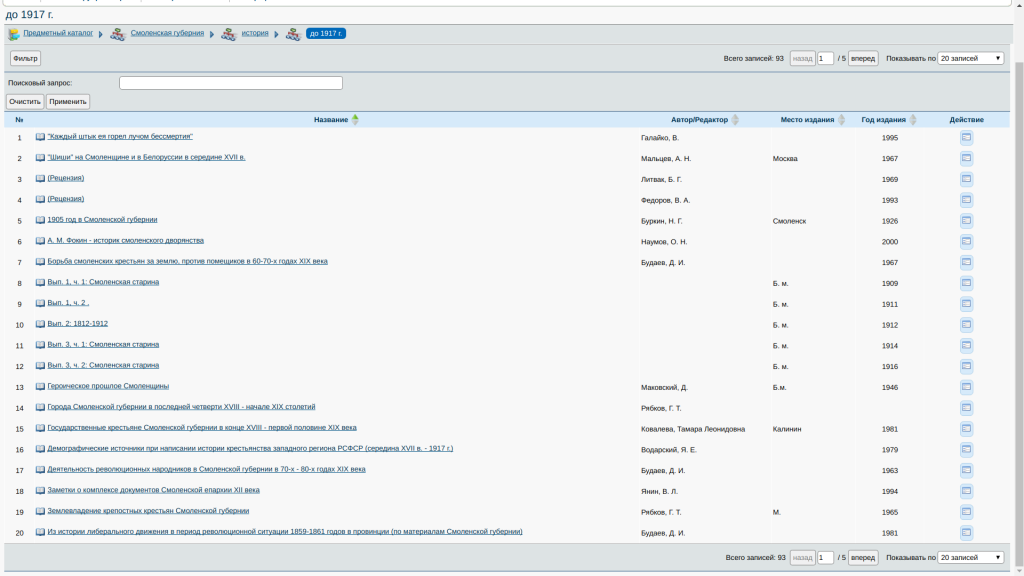 ГПИБ: Предметный каталог. Смоленская губерния. История. См. Смоленская губерния; Отсылка от: до 1917 г.; с 1917 г.