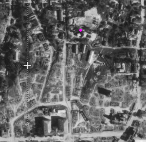 Справа фрагмент снимка 13 октября 1943 г.: на месте этих домов – руины.