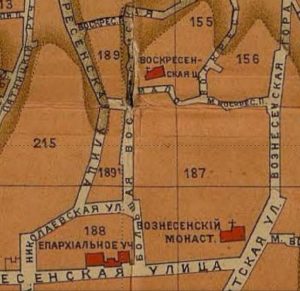 ….Прим.: розовой точкой на всех снимках помечена Воскресенская церковь.