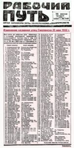 «Изменение названия улиц Смоленска 23 мая 1932 года.